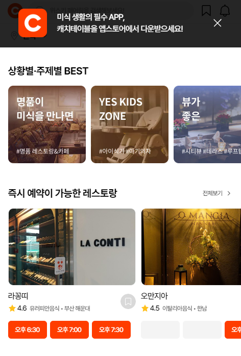 캐치테이블은 '흑백요리사' 방송 이후 폭발적인 관심을 얻고 있는 셰프들의 식당을 쉽게 예약할 수 있도록 플랫폼을 업데이트했습니다. 최강록 셰프의 '네오', 임태훈 셰프의 '도량', 권성준 셰프의 '비아톨레도 파스타바' 등 인기 있는 식당을 한눈에 볼 수 있는 섹션을 제공하며, 예약 오픈 일정도 함께 확인할 수 있습니다. 이를 통해 사용자들은 예약 시간 30분 전 알림을 받아 예약을 준비하는 등, 보다 편리한 예약 경험을 할 수 있습니다.